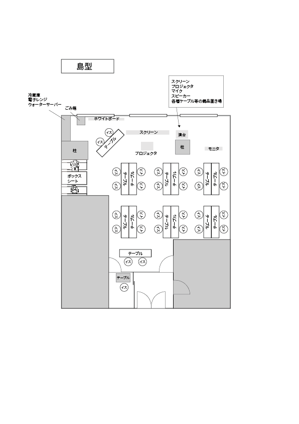 レイアウト例の他に、原状回復パターンを2種類ご用意しておりますので、いずれかの形にお戻しいただけますようお願いいたします。