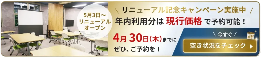 この広さ・定員・設備で検索すると、新宿地区のあらゆる会議室より割安です。
